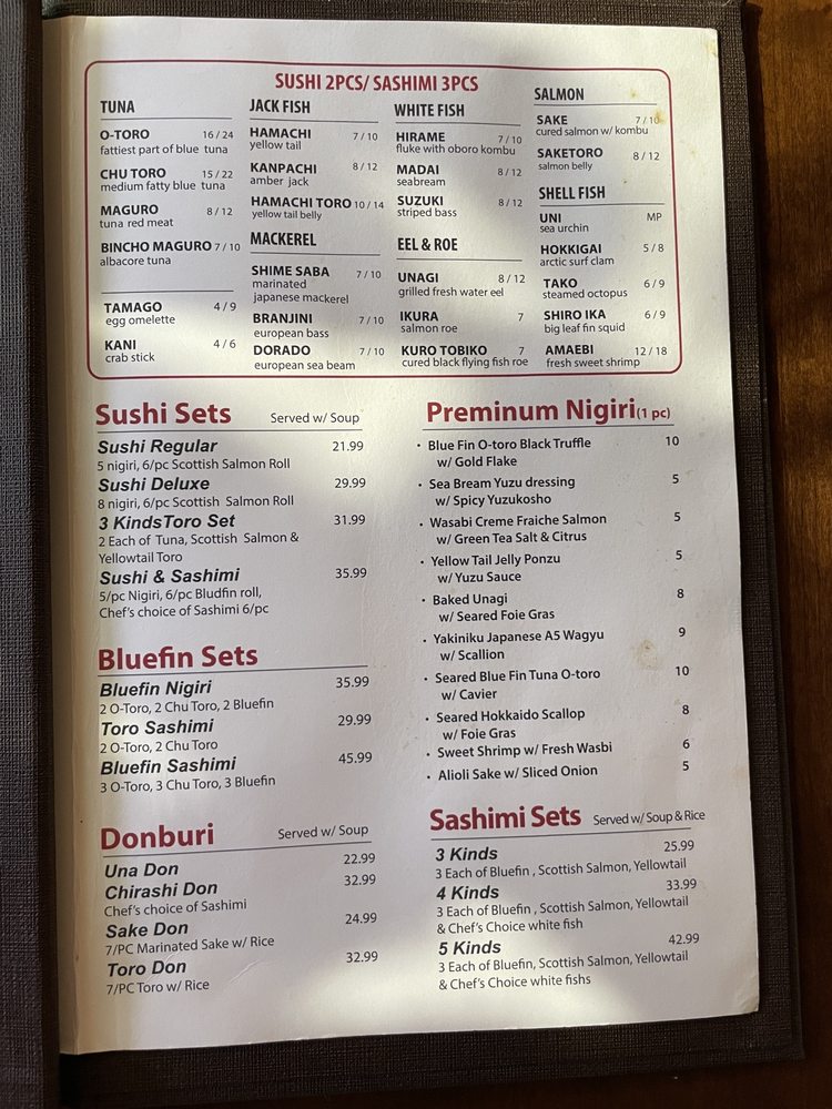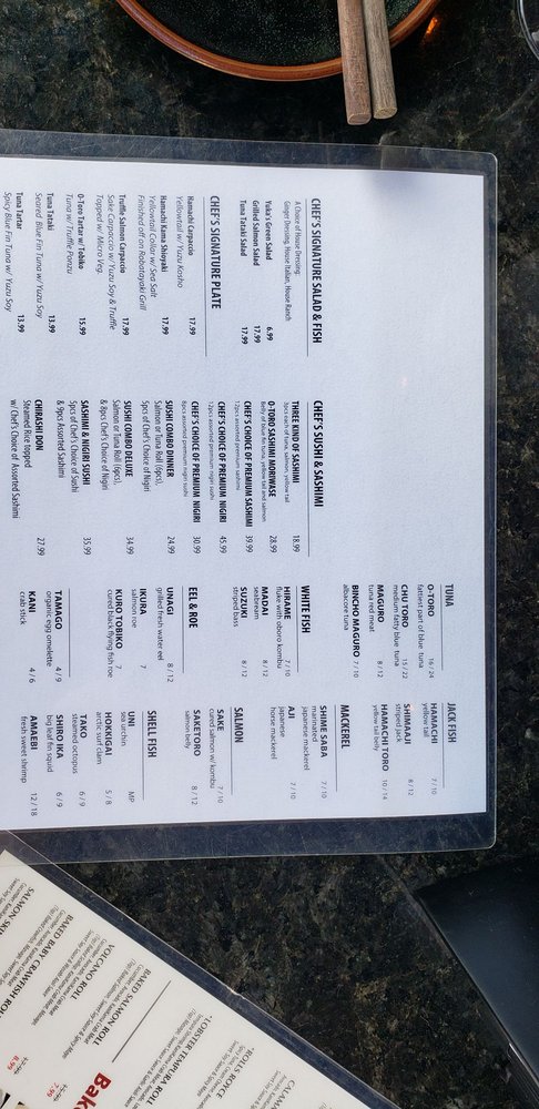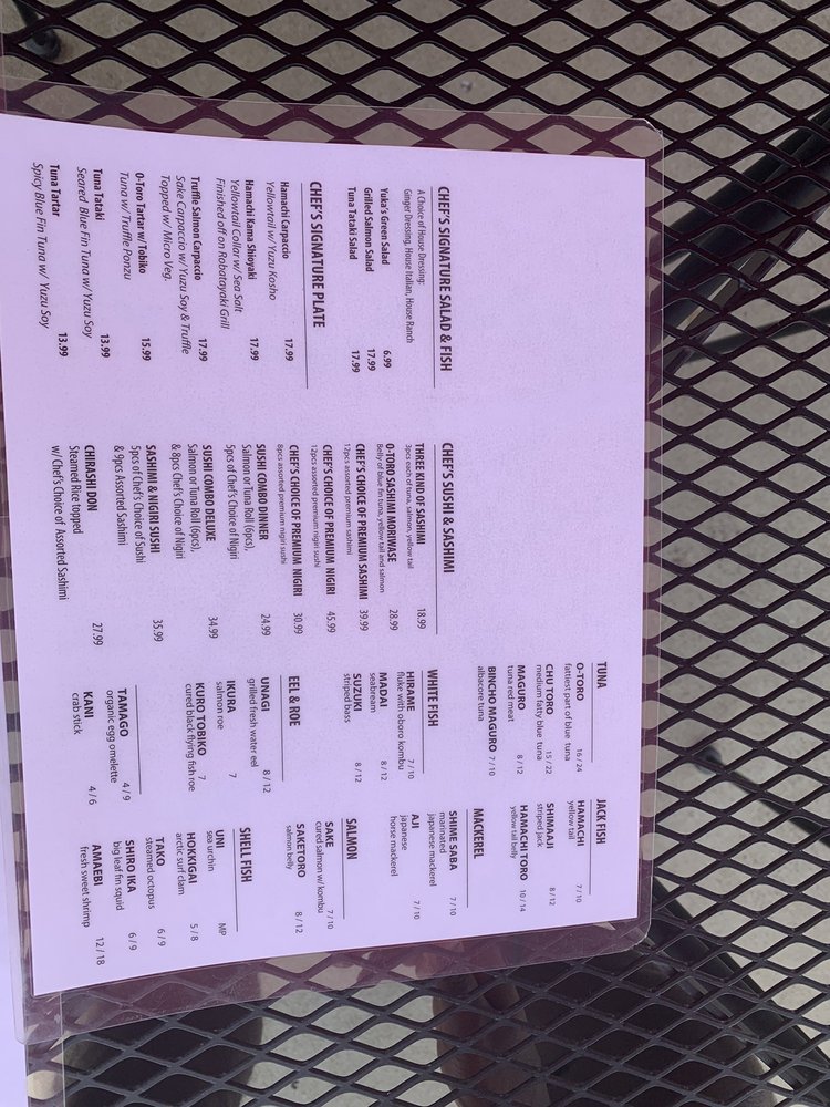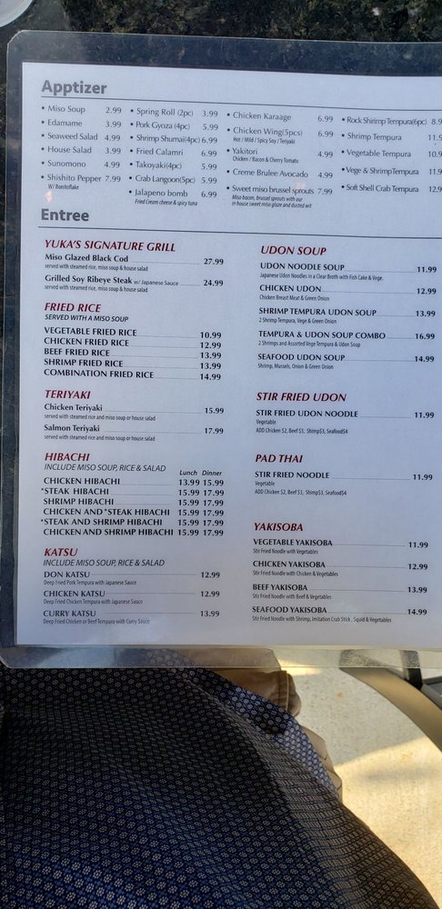 Yuka Sushi Bar Menu